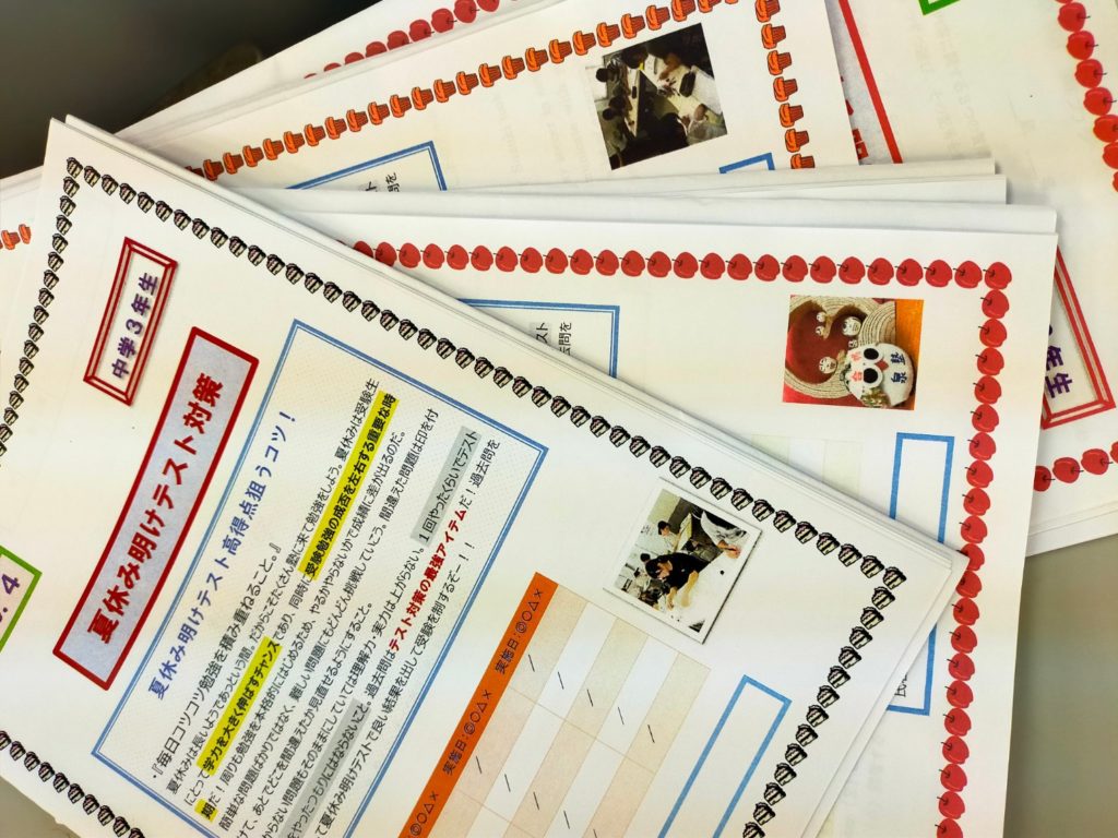 夏休み後半は、実力テスト対策を中心にした学習を行い、二学期の先取り勉強も取り入れていきます。